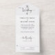 Mariage de script simple tout en une invitation. Ce faire-part de mariage minimaliste moderne en écriture manuscrite est parfait pour les couples qui veulent faire une déclaration de style contemporain. L'élégante calligraphie associée à la palette de couleurs noir et blanc créera une invitation intemporelle que vos invités n'oublieront pas. Faites une déclaration audacieuse avec ce design unique et élégant!
