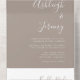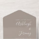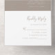 Cette simple faire-part de mariage tout-en-un moderne présente du texte blanc sur un arrière - plan taupe. Ajoutez les noms de la mariée et du marié en calligraphie stylisée et les détails en police sans serif. Le RSVP détachable comporte du texte taupe sur un arrière - plan blanc. Ajoutez votre adresse de retour en blanc sur le rabat extérieur taupe et à l'arrière du RSVP.