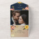 Célébrez votre amour avec ce faire-part de mariage tout en un bleu marine, alliant élégance moderne et charme botanique boho. Doté de fines flancs d'aquarelle, de tournesols vibrants et de détails rustiques, ce design reflète l'équilibre parfait entre sophistication et chaleur. Personnalisez le dos avec une photo du couple, avec vos détails de mariage et RSVP pour une expérience client sans faille et élégante. Un choix enchanteur pour une célébration joyeuse et romantique. Remarque : Cette invitation nécessite une enveloppe distincte pour l'envoi.