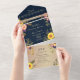 Invitation Tout En Un Mariage de tournesol rustique bleu marine