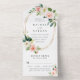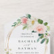 Ce tout en une carte de faire-part de mariage présente des fleurs d'aquarelle peintes en rose vif, blanc et vert feuillage avec un cadre ovale doré, une invitation de mariage avec une carte postale rsvp pour vos invités à couper et renvoyer. Pour une personnalisation plus avancée de cette conception, cliquez sur le lien "customiser plus loin". Des articles correspondants sont également disponibles.
