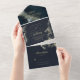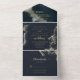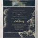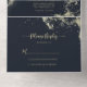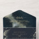 Ce mariage d'aquarelle doré tout en une seule invitation est parfait pour un mariage rustique. Le design est orné d'une tache d'or peinte à la main dans un arrière - plan bleu foncé. Enregistrez du papier en incluant plus de détails dans l'invitation plutôt que sur une carte de boîtier séparée.