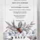 Une belle invitation tout-en-un à l'automne ou à l'hiver avec de jolis feuilles d'aquarelle gris foncé infusés de baies brun foncé et orange et de feuilles de pin. Une illustration de l'oiseau de houille apparaît à l'avant et à l'arrière de l'invitation et un faux cadre en cuivre forme une bordure autour d'un libellé qui peut être personnalisé. Le tiers inférieur a une carte de réponse déchirante avec adresse rsvp personnalisée pour vos invités à compléter. Elles sont idéales pour l'automne; forêt; bois; jardin et extérieur mariage, fiançailles, anniversaire et fête d'anniversaire.