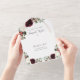Cette invitation de mariage d'hiver pour Noël, tout en un, est parfaite pour un mariage élégant des fêtes. Le design présente de beaux floraux aquarelles blancs et burgundy avec du pin, des baies sacrées et de la verdure d'eucalyptus. C'est un choix de couleurs parfait pour un mariage d'hiver. Faites de cette invitation la vôtre en incluant vos noms et tous les détails de votre mariage. Pour une personnalisation plus poussée, utilisez l'outil de conception avancé pour modifier ce modèle.