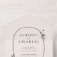 Une élégante conception d'invitation de mariage présente une typographie noire sur un arrière - plan en ivoire doux, entouré d'une délicate couronne fleur sauvage en forme ovale. La couronne est fabriquée à partir d'une variété de fleurs sauvages de dainty, créant un look doux et romantique. La typographie est élégante et sophistiquée, avec une police serif classique qui ajoute au charme général de l'invitation. La combinaison du texte noir audacieux et de la délicate couronne fleur sauvage crée un contraste visuel étonnant, faisant de cette invitation un beau choix pour une célébration mariage formelle. L'arrière - plan d'ivoire permet aux autres éléments de design de se démarquer et rend l'invitation facile à lire, en s'assurant que vos invités n'auront aucun mal à trouver tous les détails importants de votre grand jour.