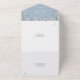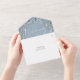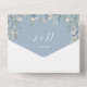 Invitation de mariage tout-en-un bleu poussiéreux avec verdure florale et typographie élégante. L'invitation comprend une carte-réponse perforée qui peut être adressée individuellement ou laissée vierge pour que vous puissiez écrire à la main les coordonnées de vos invités. Conçu par Thisisnotme