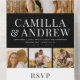 La typographie moderne et un collage de 4 photos sont les caractéristiques de tout en un faire-part de mariage avec la carte de réponse déchirante. Cliquez sur Modifier pour customiser cette conception.