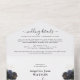 Affichez tous les détails de votre mariage avec cette élégante invitation de mariage "Tout en Un", avec un fond blanc classique, une calligraphie noire et une police cursive et un ensemble de roses florales bleues marine et blanches avec des accents de faux or et du feuillage vert. Les invités peuvent facilement détacher la carte-réponse et la mettre à la poste ! Modifiez facilement toutes les informations avec vos coordonnées de mariage en utilisant le modèle fourni. Invitations de mariage tout-en-un abordables qui épateront vos invités.