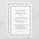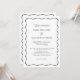 Célébrez l'amour intemporel avec ce faire-part de mariage noir et blanc qui présente une calligraphie élégante, des polices serif raffinées et une gracieuse carte d'identité. L'expression "Ensemble avec leurs familles" et "Demandez l'honneur de votre présence" en font un lieu idéal pour les mariages d'église et les cérémonies traditionnelles de cravate noire. Un cadre noir ondulé ajoute un charme moderne, tandis que l'envers comprend de l'espace pour les détails et un code QR qui relie votre site Web RSVP, parfait pour économiser sur l'envoi. Entièrement personnalisable pour votre journée, ce design minimaliste allie élégance classique et simplicité contemporaine.