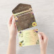 Profitez de la beauté de votre journée spéciale grâce à notre élégante faire-part de mariage tout-en-un, conçue pour mêler charme rustique et élégance champêtre. Cette magnifique invitation présente des fleurs sauvages d'aquarelle vibrants, des tournesols gais et des accents dorés chatoyants, créant un équilibre parfait entre beauté naturelle et style sophistiqué. Personnalisez-le facilement avec votre photo, les détails du mariage, le site Web et les informations RSVP, ce qui en fait un moyen chaleureux et élégant d'invitation vos proches. Idéale pour les mariages rustiques, campagnards ou à thème floral, cette invitation combine magnifiquement romantisme et élégance. Important : Cette invitation tout-en-un écologique exige une enveloppe distincte pour l'envoi.