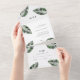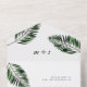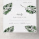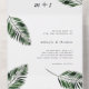 Des feuille de palmiers à l'aquarelle tendance rendent ce faire-part de mariage chic avec rsvp parfait pour un mariage moderne. Ce beau tout en un faire-part de mariage possède également une typographie élégante et un arrière - plan blanc simple et propre.