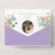 Adoptez la romance avec cette invitation de mariage violette bohème tout-en-un. Caractérisée par des illustrations florales vibrantes, un code QR pour RSVP et un espace photo personnalisable, c'est parfait pour les mariages en jardin, rustiques ou en plein air. Conception écologique sans enveloppe nécessaire.