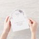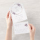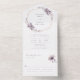 Mariage floral tout en une invitation. Douce, rêveuse et romantique, cette faire-part de mariage et carte RSVP élégante présente une magnifique couronne d'aquarelle de feuilles et de fleurs peints à la main dans des tons monochromes de violet, prune et roses douces sur un cadre en or rose. Le dos de l'invitation comprend un beau motif. Trouvez les objets correspondants dans la collection Elegant Purple Botanical Mariage Collection.