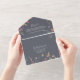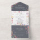 Ce mariage classique bleu sauvage à fleurs, le tout dans une seule invitation, conviendra parfaitement à un mariage tropical. Le design est composé de fleurs sauvages rose, violet, jaune, bordeaux, marine et bleu dessinées à la main, disposées dans de belles formes. Enregistrez du papier en incluant plus de détails dans l'invitation plutôt que sur une carte de boîtier séparée.