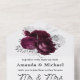 Invitation de mariage florale bourguignon et argent avec accents de prune personnalisable selon les spécificités de votre événement.