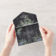 Élégantes et rustiques Cartes de mariage en bois de grange noir avec des branches de pin aquarelle, des baies de genièvre et des fleurs, tout en un, qui comprennent les informations de mariage et une carte-réponse que vos invités détachent et envoient. Les enveloppes ne sont pas nécessaires. Couleurs noir, blanc, bleu et nuances de vert. Idéal pour un mariage rustique, hivernal, automnal, bohème, forestier ou en plein air !