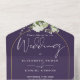 Invitation Tout En Un Mariage floral verdure arc violet et or