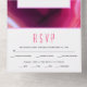 Fuchsia rose agate tranche moderne géode tout en un faire-part de mariage. Un design de mariage moderne et élégant avec une tranche d'agate rose et un cadre blanc avec votre libellé. Il comprend une déchirure détachable RSVP.