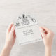 Faire-part de mariage tout-en-un dessiné à la main et funky qui comprend les informations de mariage et la RSVP, les choix de menu sur une carte postale que vos invités détachent et envoient. Les enveloppes ne sont pas nécessaires. Caractéristiques : gâteau de mariage avec mariés, champagne, guirlande lumineuse, noeuds et gribouillis en noir sur un fond texturé légèrement délavé et des polices amusantes. Pour faire plus de changements, allez sur Personnaliser ce modèle. En bas, vous verrez « Voulez-vous personnaliser encore plus ce design ? Cliquez sur le bouton MODIFIER en utilisant l'outil de conception. De là, vous pouvez changer certaines polices et certaines couleurs, déplacer des éléments ou supprimer ce dont vous avez besoin.