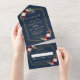 Belle Botanique Rustique - arrière - plan bleu marine et or Mariage géométrique All In One Invitation, Il suffit de plier chaque carte dans la forme esquissée, puis sceller et envoyer aucune enveloppe nécessaire pour l'expédition (pas de VV nécessaire)