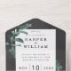Le tout en un faire-part de mariage triplé avec Eucalyptus sur un arrière - plan gris fusain aquarelle. combinaison faire-part de mariage, carte rsvp et enveloppe. La carte de réponse est une carte perforée de déchirure rsvp avec choix de repas détaillés. Une solution moderne tout en un, pour empêcher la carte rsvp fermée de se retrouver accidentellement sous le réfrigérateur.