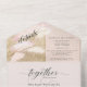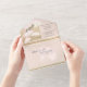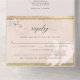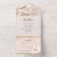 Fard et Or Chic Tout en Un Mariage - Envoyez une seule invitation comprenant une réponse par courrier - l'invitation de mariage et les détails de la réception, tout dans une belle invitation trifold. L'élégant luxe chic de la texture or rose est accentué de jolies fleurs de pampa plumeuses rose fard et de roses anglaises roses - typographie calligraphiée manuscrite pour les mots d'accentuation - si vous avez besoin d'aide, veuillez contacter le concepteur - partie de notre collection de mariage Blush Rose Gold Pampas Grass, modèles de mariage faciles à personnaliser. Conception originale de ©WhimsicalArtwork™ pour theBarefootBride ™.
