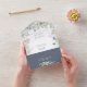 Invitation Tout En Un Mariage hivernal floral vert sauge et bleu poussié
