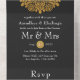 Faire-part de mariage indienne à l'aquarelle tendance avec des motifs de mandala dorés contre un arrière - plan noir personnalisable selon les détails de votre événement.