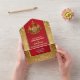 Une belle et régale invitation tout en un avec une luxueuse crête royale surmontée d'une couronne d'éléphants indiens d'or encadrée de chaque côté par une incrustation bordeaux bordée d'un faux or et d'une luxuriante toile de fond damassée vibrante. Les modèles de texte blanc pour votre libellé personnalisé apparaissent des deux côtés. Le tiers inférieur a une carte de réponse déchirante avec adresse rsvp personnalisée pour vos invités à compléter plus les mêmes éléphants royaux sur un cercle de marron bordé d'or sur le même fond damassé doré. Elles sont idéales pour l'hindi, l'hindou, le dharma de Sanatani et les mariages mariage d'origine asiatique, les fiançailles, les anniversaires, les douches nuptiales et les fêtes d'anniversaire. Il vous suffit de modifier le libellé pour convenir à votre événement ou occasion spéciale.