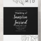 Invitation Tout En Un Mariage Ligne Double Feuille de Monstera Noir Blan