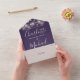Le tout dans un faire-part de mariage avec de jolies lampes à cordes, des jarres de maçon, un nom élégant de script signature et des initiales monogrammes sur un arrière - plan violet. L'invitation comprend une carte RSVP perforée qui peut être adressée individuellement ou laissée vide pour que vous puissiez écrire à la main les coordonnées de votre invité. Conçu par Thisisnotme©