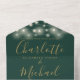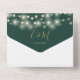 Le tout dans un faire-part de mariage avec de jolies lampes à cordes, des jarres de maçon, un élégant nom de script signature or et des initiales monogrammes sur un arrière - plan vert émeraude. L'invitation comprend une carte RSVP perforée qui peut être adressée individuellement ou laissée vide pour que vous puissiez écrire à la main les coordonnées de votre invité. Conçu par Thisisnotme©