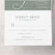 Elegance rencontre la commodité avec tout cela en une invitation de mariage avec déchirure carte postale RSVP en bas. L'élégante carte calligraphique entre les noms de la mariée et du marié, est le point central du design minimaliste moderne, avec un arrière - plan vert sage.
