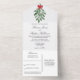My Mistletoe Mariage All-in-One Invitation présente une illustration charmante de faux-pied aquarelle attachée à un arc rouge festif, donnant le ton parfait pour un mariage d'hiver ou de vacances. A l'intérieur, les détails de l'invitation sont présentés dans la typographie noire classique avec des accents de script gracieux. La carte postale perforée RSVP en bas peut être facilement remplie, détachée et envoyée par la poste, ce qui élimine le besoin d'enveloppes supplémentaires. Parfait pour les couples qui veulent une option rationalisée mais belle, ce design se coordonne sans effort avec la collection complète de mariage mistletoe pour un look poli et cohésif.