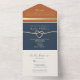 Invitation Tout En Un Mariage moderne Boho Navy Blue et Terracotta