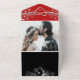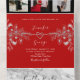 Élégant, moderne, vintage, noir et rouge tout-en-un faire-part de mariage avec coeur de corde argentée, dentelle dorée fleurie et personnalisées quatre photos du couple. Ajoutez vos 4 photos, votre site web et votre code QR - pour RSVP et plus d'infos.