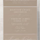 Faire-part de mariage tout-en-un élégant avec vos initiales monogrammes et détails mariages en texte blanc avec accents de script de calligraphie moderne sur un arrière - plan taupe. Cette conception minimaliste mais sophistiquée comprend une carte RSVP détachable en bas, qui peut être envoyée par la poste en tant que carte postale pratique - aucune enveloppe nécessaire. Un choix élégant et pratique pour votre journée spéciale !