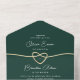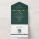 Elégante et moderne vert émeraude et or mariage tout-en-un invitation avec un design minimaliste et un accent coeur doré chic. Ce sceau écologique et l'invitation est parfait pour un mariage sophistiqué en automne ou en hiver. Il comprend des détails RSVP avec un code QR pour une réponse facile aux clients. Personnalisez le texte pour correspondre à votre jour spécial.