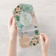 Cette carte faire-part de mariage présente un design boho-chic élégant et moderne, avec une palette de couleurs pastel douce, vert, bleu et rose. L'arrière - plan est ornée de fleurs à l'aquarelle, dont des roses et des feuillages feuillus, créant une atmosphère romantique et délicate. Le texte est écrit dans une combinaison de polices serif classique et de polices de script calligraphique, ajoutant une touche de sophistication et de grâce. La carte comprend tous les détails essentiels pour l'événement, tels que la date, l'emplacement, les options RSVP et les préférences de repas, le tout disposé en un plan circulaire qui attire l'oeil en douceur à travers le design. Tout cela en un seul design rend l'envoi d'invitations et rsvps beaucoup plus simple. Personnalisez le texte avec vos informations.