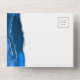 Le bord gauche de cette élégante faire-part de mariage tout-en-un moderne et RSVP est doté d'une bordure en aquarelle bleu royal ornée d'une parties scintillant en faux argent. Le texte personnalisable combine écriture manuscrite grise au fusain, cuivre et polices italiques sur un arrière - plan blanc. L'adresse de retour apparaît sur le rabat extérieur et sur le côté arrière de la carte RSVP détachable.