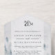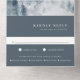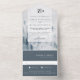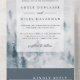Élégante invitation de mariage hivernal, un arrière - plan d'aquarelle représentant un paysage de montagne enneigé parsemé de pins dans les nuances brumeuses de bleu et de gris. Personnalisez avec vos détails mariages en lettrage doux et doux, surmonté de votre monogramme ou de votre duogramme, accompagné d'un esperluette décoratif. Un beau choix pour des mariages d'hiver élégants en montagne ou en forêt.