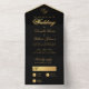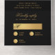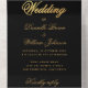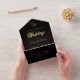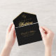 Une élégante et inhabituelle invitation de mariage noire et or avec RSVP détachable.