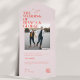 La carte design Belmont présente les noms du couple dans une grande police en gras, créant un élément visuel qui en dit long. Comme vous pouvez le voir ci-dessus et ci-dessous, les détails essentiels de la célébration sont gracieusement présentés dans une petite police serif classique. Le dos est une toile pour une autre belle photo du couple, permettant un aperçu de leur voyage partagé. Un message personnalisé, élaboré avec soin par le couple, ajoute une touche chaleureuse et intime, invitant les proches à se joindre à la célébration de leur union.