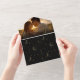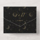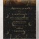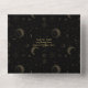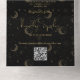 Cette invitation de mariage photo noir et or tout-en-un présente une typographie élégante sur un fond de lune et d'étoiles célestes. L'invitation comprend une carte RSVP perforée avec le code QR de votre site web de mariage. Conçu par Thisisnotme©