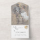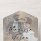 Célébrez votre amour avec l'élégance intemporelle de notre invitation de mariage photo personnalisée en automne tout-en-un. Doté d'une riche floraison automnale en déchirure de la partie carte postale rsvp, cette invitation saisit l'essence de la saison avec ses teintes chaleureuses et accueillantes. Le lettrage calligraphie magnifiquement élaboré ajoute une touche de sophistication, rendant cette invitation aussi exquise que votre journée spéciale. Inclure une photo personnalisée du couple heureux pour ajouter une touche personnelle et sincère. Tout le texte est entièrement personnalisable, vous permettant de personnaliser chaque détail pour refléter parfaitement votre histoire d'amour unique. Parfait pour les couples à la recherche d'un mélange de beauté naturelle et de charme classique, ce design tout-en-un comprend toutes les informations essentielles, préparant le terrain pour une célébration de mariage mémorable et enchanteresse.