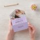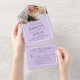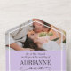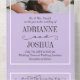 Un violet clair tout en un faire-part de mariage, vous pouvez personnaliser avec une photo de vous deux en haut de l'invitation. Libellé informel avec d'élégantes polices de charbon de bois et vos noms en gros caractères.