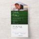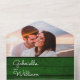 Le tout dans un faire-part de mariage avec de jolies lampes à cordes, votre photo, initiales monogrammes et élégante typographie moderne minimaliste sur un arrière - plan rustique de panneaux de bois vert émeraude. L'invitation comprend une carte RSVP perforée qui peut être adressée individuellement ou laissée vide pour que vous puissiez écrire à la main les coordonnées de votre invité. Conçu par Thisisnotme©