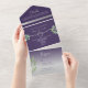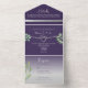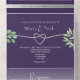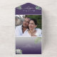 Elégante, moderne, aquarelle verdure pourpre poussiéreux tout en un faire-part de mariage avec coeur simple en fil gris argenté et image personnalisée du couple à l'arrière. Ajoutez votre photo, les détails du mariage et rsvp.