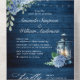 Invitation Tout En Un Mariage QR bleu Hydrangea Lantern Wood
