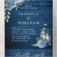 Invitation Tout En Un Mariage QR bleu Hydrangea Lantern Wood